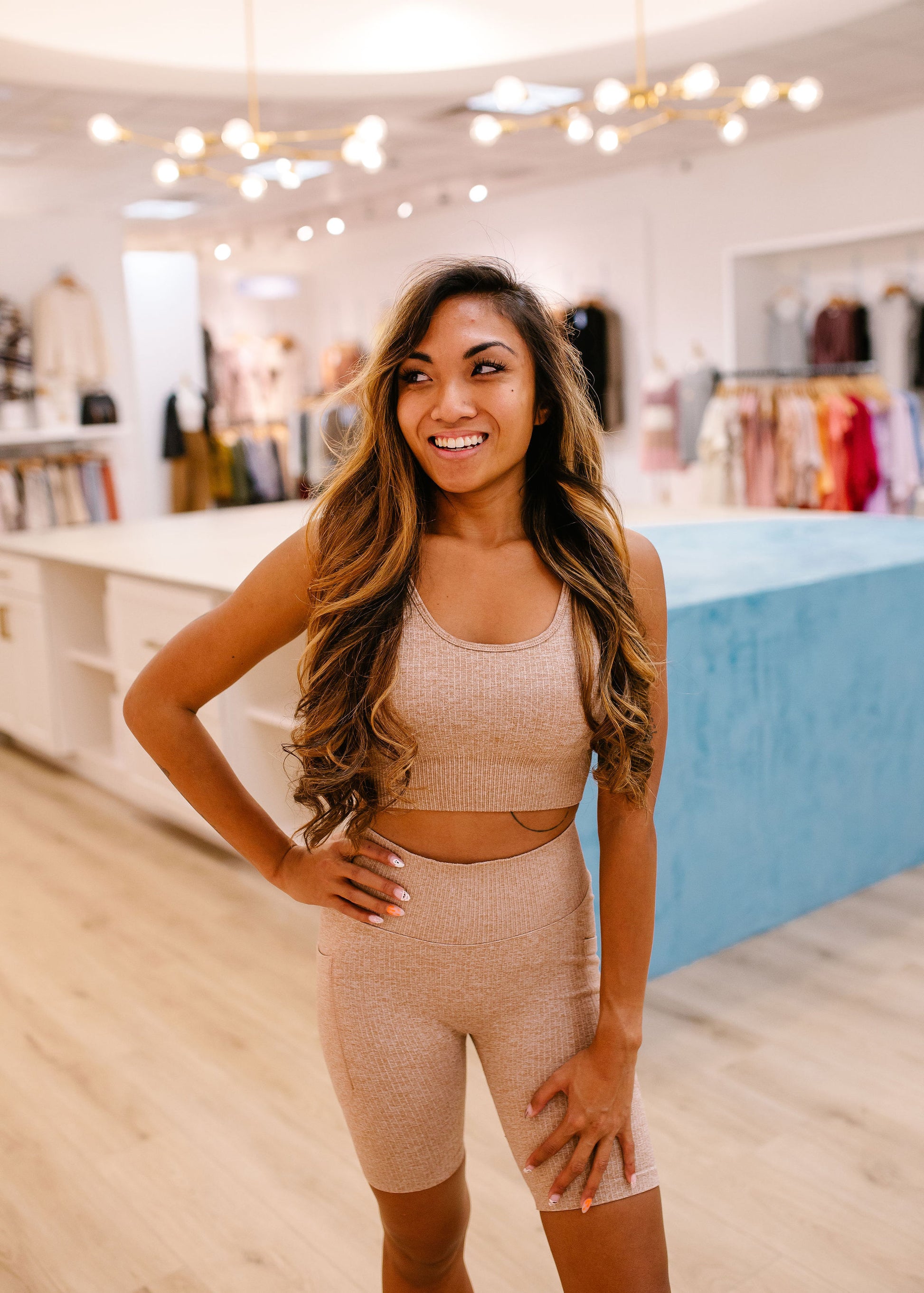 This seamless ribbed sports bra comes in two beautiful colors! Pair with our Burning Tree Biker Shorts for a complete look!