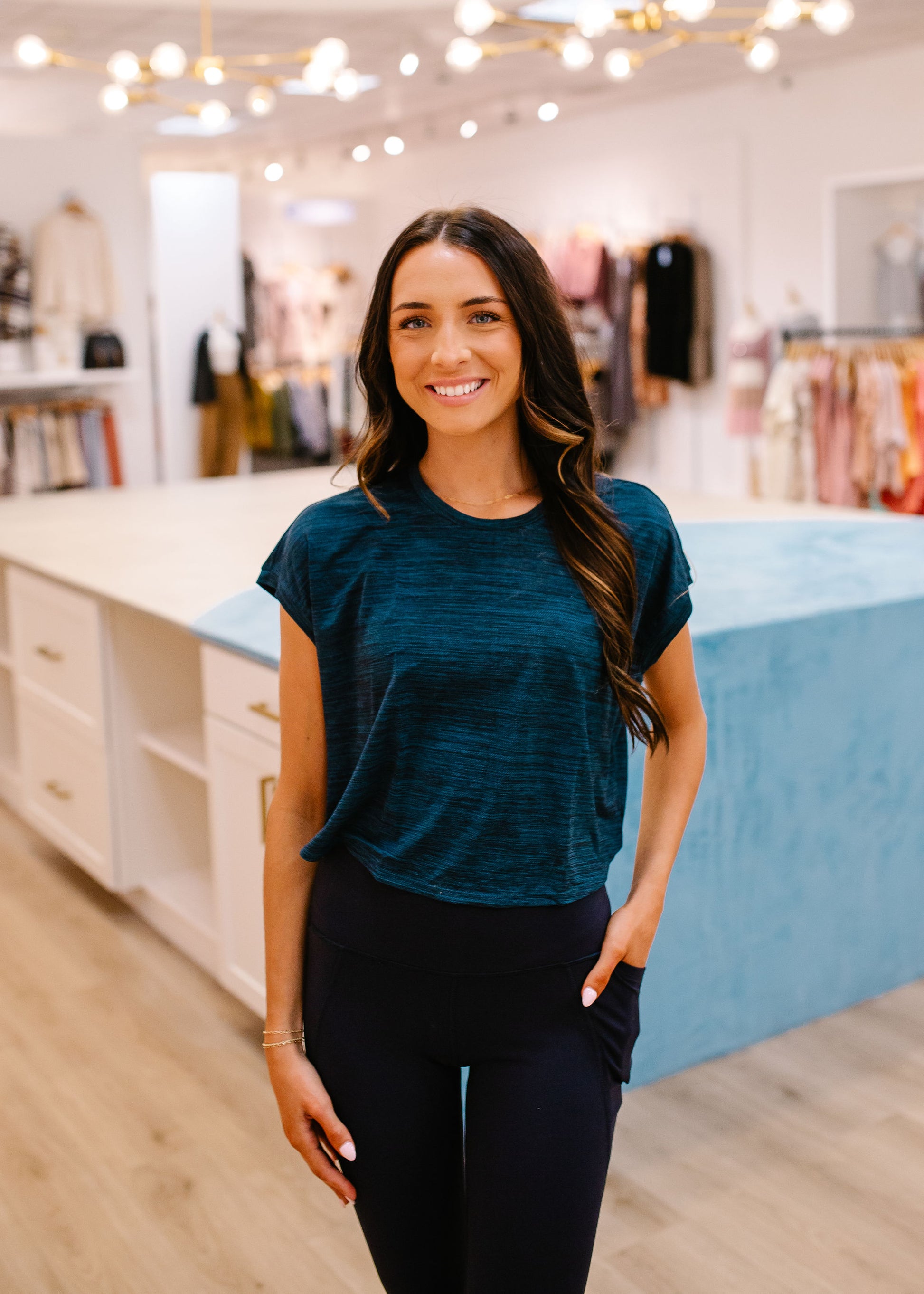 This cropped athleisure top comes in two bold colors easy to pair with your favorite leggings! Seamlessly move from running at the gym to running errands in town!