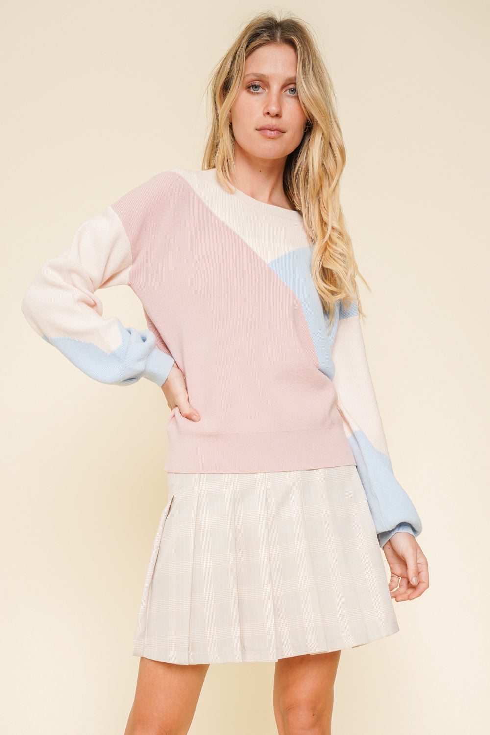 | This color block sweater is both lightweight and versatile to go with any of your outfits-- perfect for any season! |