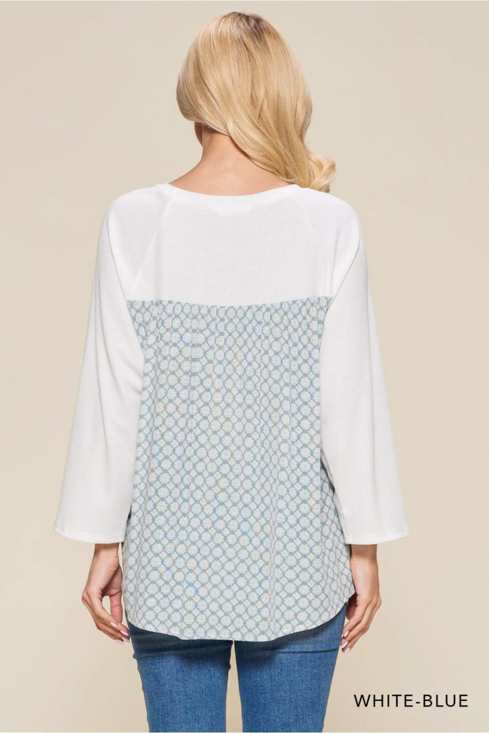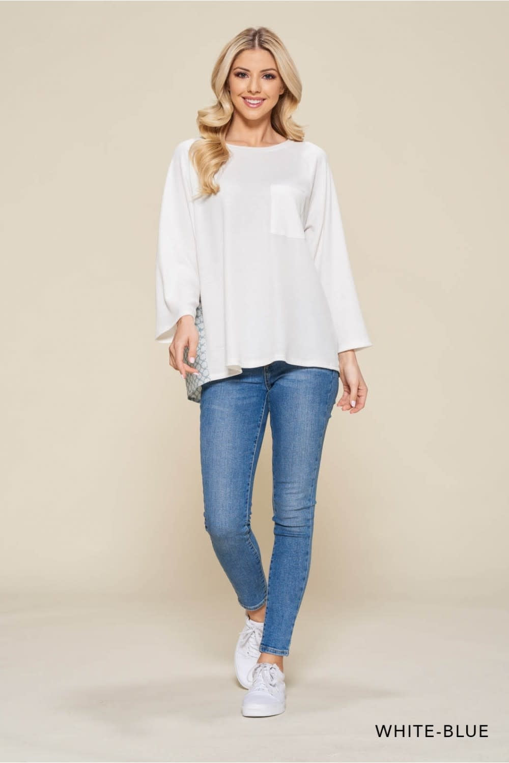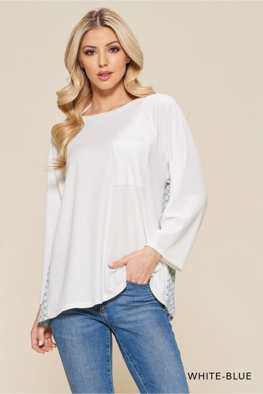 With long, flowy sleeves and an eye-catching print on the back, throw this top on with your favorite jeans and have the perfect look for any casual outing!