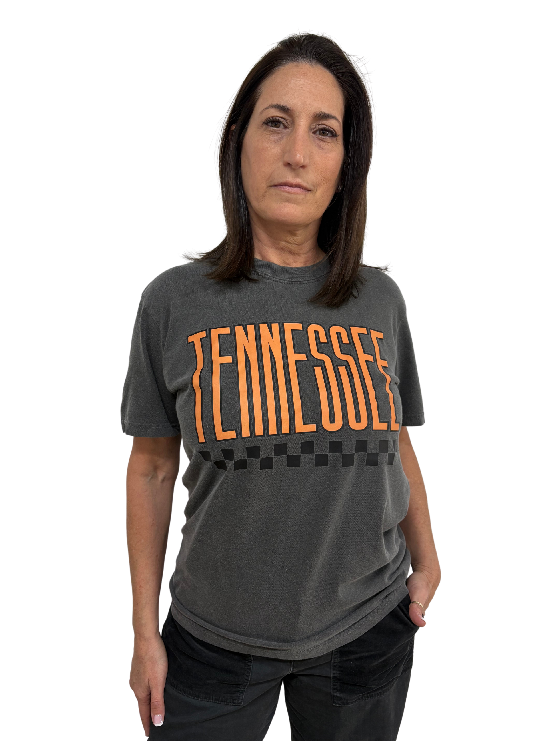 Channel cool Southern grit in the Tennessee Speedway Tee, where bold meets laid-back. Featuring a standout stretched Tennessee graphic over a vintage-inspired checkerboard line, this tee brings race-day energy with a relaxed, lived-in feel.