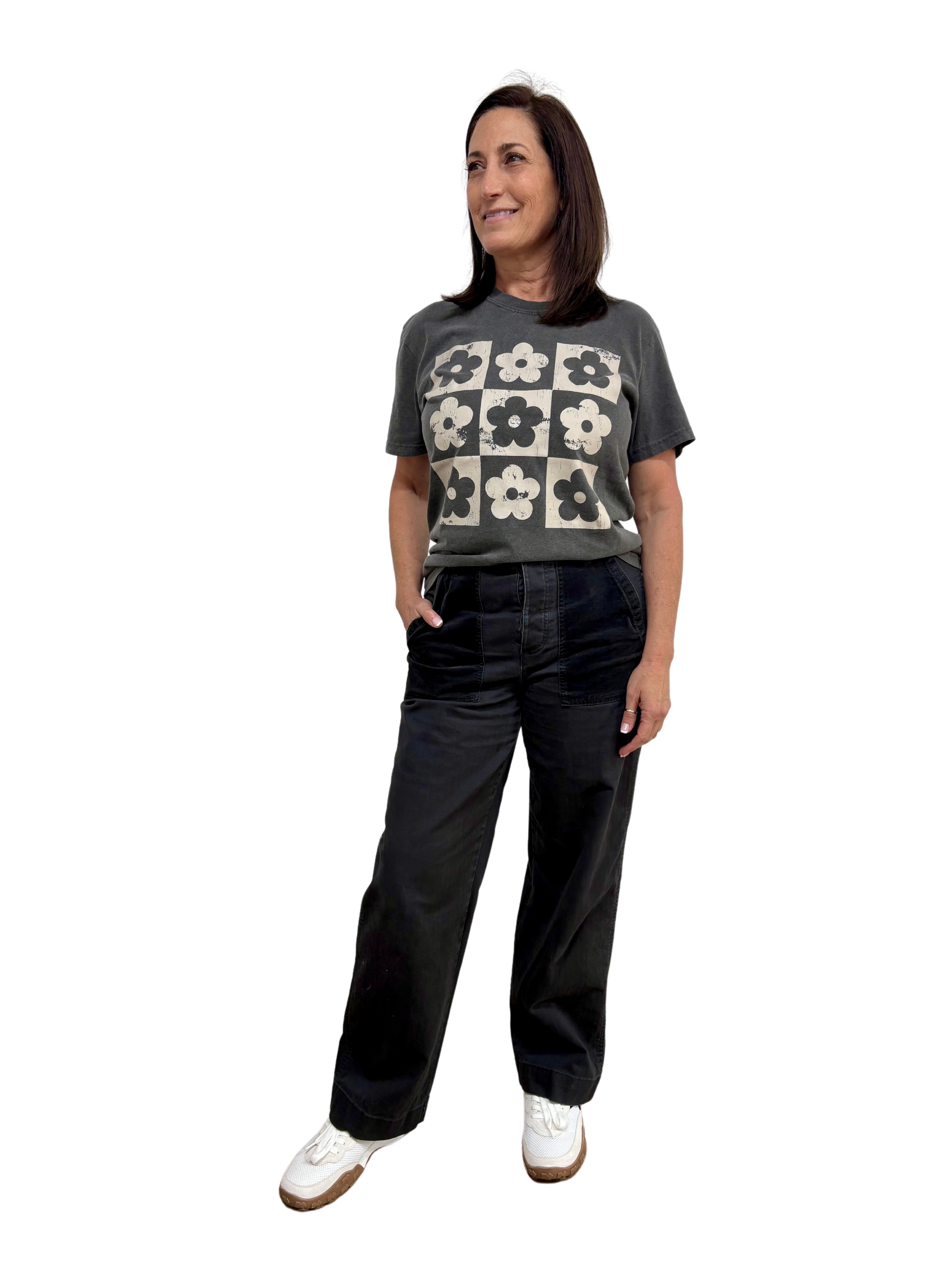 Bring on the vintage vibes with our Retro Bloom Checkerboard Tee — a soft, everyday favorite with a graphic twist. Featuring a 3x3 grid of bold retro-style flowers, this tee adds just the right amount of personality to your casual look.